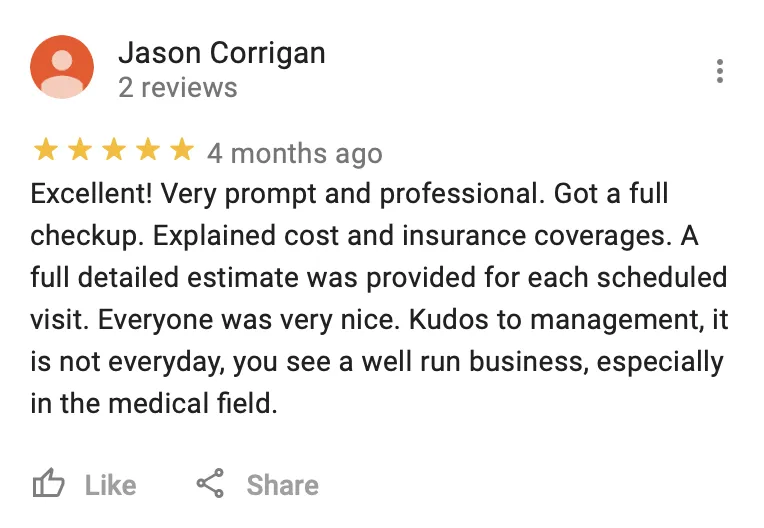 have over 430 positive reviews online. Don't take our word for it, just read what patients have to say about us below!